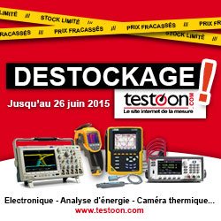 Soucieux d’aider ses clients à s’équiper avant l’été, Testoon a mobilisé ses équipes afin de leur proposer un déstockage spécial « Industrie & Electronique » du 15 au 26 juin 2015. Les clients pourront profiter de produits à prix très avantageux avec la qualité de conseil et de service qui font la réputation de Testoon. Oscilloscopes, caméras thermiques, alimentations, sondes, analyseurs de puissance..., retrouvez un ensemble de promotions sur les plus grandes marques : Tektronix, Teledyne-Lecroy, Chauvin Arnoux, Fluke, Sefram, TDK Lambda...