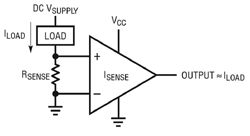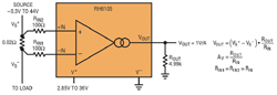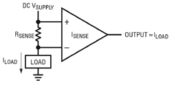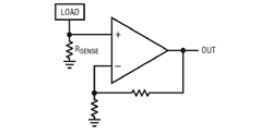 La mesure de courant peut être effectuée à l’aide de plusieurs types d’amplificateurs à base de circuits intégrés : Pour les applications de mesure de courant, les ampliops classiques sont mieux adaptés à la mesure de courant "low-side", à cause de leur plage de tension de mode commun réduite. Leur gain en boucle ouverte élevé nécessite une rétroaction (voir figure 2a) et restreint donc leur usage pour les signaux d’entrée asymétriques. Cependant, ces dernières années, de nouveaux produits avec tensions d’entrée de mode commun élevées, tels que le LT6016, se sont révélés adaptés à la mesure de courant "highside".