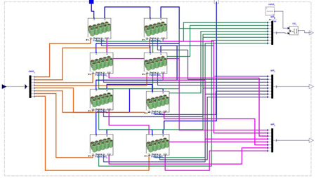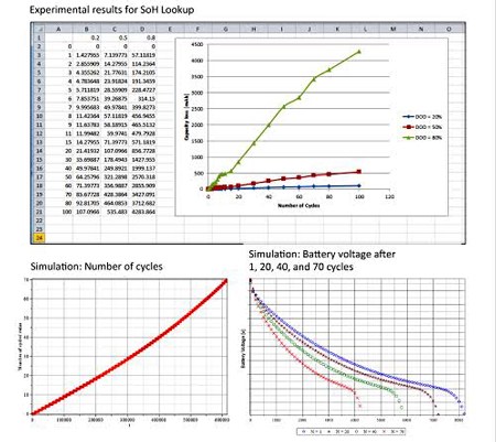 Le résultat final était une batterie susceptible d’être configurée pour représenter un empilement comprenant jusqu’à 144 cellules et pouvant être reliées dans toutes les combinaisons possibles de réseaux en parallèle et en série. Des modes de défaillances ont également été intégrés, comme le court-circuitage ou l’ouverture des circuits de cellules isolées, l’incorporation des variations de capacité de charge d’une cellule à l’autre et la diminution de capacité sur la durée de vie des cellules.