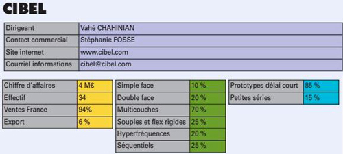 En 2010, CIBEL a retrouvé une activité et un résultat identiques à ceux de 2008. CIBEL se positionne de plus en plus sur les productions dites "exotiques" (grand nombre de couches (jusqu’à 48 à ce jour), pistes et isolements 60μm, ratio épaisseur percée/diamètre égal à 20, mixité de substrats, précisions de gravure +/- 10μm, CI séquentiels jusqu’à 6 stratifications / 6 perçages, impédance maîtrisée à +/- 5%, trous percés "mécaniquement" (et métallisés !) à 60μm...