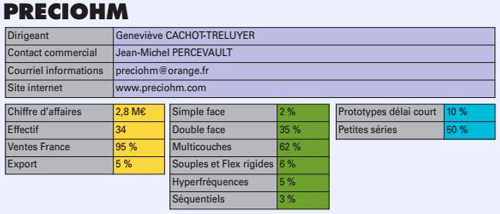 La société PRECIOHM est sortie de sa procédure de sauvegarde par adoption d’un plan par le tribunal en date du 12.08.10. La Société a toujours, malgré la crise et la période difficile, continué d’investir dans du matériel de production de pointe (perceuse microvias à axe Z contrôlé), et elle dispose d’un outil de travail performant pour répondre aux développements actuels. Par ailleurs, la Société PRECIOHM a également continué d’investir dans la durée pour préparer la sortie de crise. Elle a notamment travaillé durant toute l’année 2009 à l’obtention de la certification EN 9100 (norme de référence aéronautique). Cette certification a été obtenue en Janvier 2010.
