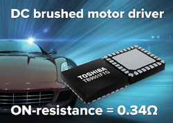 Toshiba Electronics Europe vient de lancer un CI driver de moteur miniature, pour moteurs DC à balais. Bien que principalement destiné aux applications automobiles de compartiment moteur, comme la commande d’accélérateur ou de vanne proportionnelle, le TB9051FTG convient aussi à la commande de systèmes d’habitacle fonctionnant avec des courants jusqu’à 5A, comme les réglages de rétroviseurs extérieurs ou les systèmes de verrouillage de coffre.