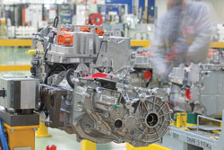 La ligne d’assemblage finale réunit les trois sous-ensembles : le Power Electronic Control (PEC), le réducteur (mini-boîte de vitesses) et le moteur électrique (carters