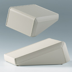 Cette série de boîtiers permet une grande souplesse pour l’implantation des composants, car la mise en place des circuits imprimés peut se faire dans chacune des parties. Grâce à la disposition à angle droit des surfaces pour éléments de commande l’une par rapport à l’autre, il est possible d’intégrer l’électronique et des interfaces complètes et pré-montées. Pour l’assemblage de cette nouvelle série de boîtiers muraux / de table, il suffit d’accrocher la partie supérieure à la face avant correspondante, de placer ensuite l’ensemble sur la partie inférieure et de les fixer à l’aide de deux vis autotaraudeuses.