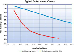 En règle générale, dans le cas de condensateurs céramique, plus le diélectrique est stable, plus la capacité est faible. Les diélectriques de classe 1, qui sont les plus stables, qui offrent les plus faibles pertes, et qui sont quasi-exempts de vieillissement, ne permettent d’obtenir que de faibles valeurs de capacité, et nécessitent donc de faire des compromis. Cependant, les progrès réalisés au niveau des matériaux et des processus technologiques, associés à une meilleure conception et à une meilleure compréhension des mécanismes de défaillance au cours du temps, ont permis à Syfer d’améliorer considérablement le rendement volumétrique de ses condensateurs céramique multi-couches. La limite de 56 nF pour un composant 1 kV en boîtier 1812 qui était valable il y a une dizaine d’années, est aujourd’hui de 180 nF.
