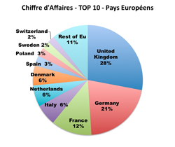 En terme de facturation, la France - avec une progression de 10% de 2013 à 2014 et une progression de 18% de 2014 à 2015, est passée de la 4ème à la 3ème place derrière la Grande Bretagne et l’Allemagne.