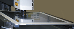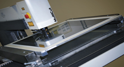 Des essais sur un pochoir du type LT123 d’une épaisseur de 100μ monté sur cadre 29’’x29’’ont été effectués sur une machine UP3000 et crème ALPHA OM338T. La mise en place dans la machine ne pose aucun problème, le fait que l’écran soit tendu rend les manipulations plus faciles qu’avec les traditionnels cadres auto-tendeurs.