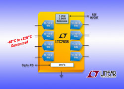 Les CNA octuples LTC2636 rejoignent les CNA simples LTC2630 et LTC2640, déjà produits. Ils sont les éléments d’une famille entière de CNA 8 bits, 10 bits, 12 bits, octuples, quadruples, doubles et simples, avec référence de tension interne, en petits boîtiers.