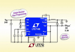 Ses larges gammes de tensions d’entrée et de sortie sont appropriées à une grande variété d’applications de tests, de mesures et de dispositifs industriels. La conception unique du LTC7149 inclut une source de courant interne, de précision, de 50µA, sur la broche ISET, lui permettant de générer des tensions de sortie aussi basses que -28V en utilisant une seule résistance de programmation, externe. De plus, le LTC7149 présente une précision de la tension de sortie de ±0,8%. Sa fréquence de commutation est programmable, par l’utilisateur, de 300kHz à 3MHz, permettant l’emploi de condensateurs et inductances, de petite taille et de faible coût. Avec un boîtier QFN de 28 broches, 4mm x 5mm, ou TSSOP, à performances thermiques renforcées, il présente une empreinte très compacte.