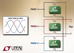Linear Technology Corporation annonce la disponibilité d’une conception de référence d’un redresseur à pont de diodes idéales, 3 phases, faibles pertes, démontrée par la carte d’évaluation DC2465. Les redresseurs 3 phases conventionnels utilisent six diodes, mais les diodes font chuter la tension et dissipent de la puissance pour une intensité de courant de charge de quelques ampères. Cela requiert des radiateurs onéreux et des solutions de refroidissement actif qui compliquent la conception thermique et accroissent la taille de la réalisation.
