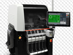 De plus, on peut lui ajouter une valve de dosage pour la colle et la crème à braser avec lequel on peut l’utiliser aussi pour des applications en 2.5D. En fonction des applications, la valve peut être soit à temps/pression soit à vis d’Archimède soit bien sûr une Jetvalve. Pendant le développement, Essemtec a spécialement fait attention à ce qu’un changement de production soit sans contrainte sur cette petite machine. Le nombre important de feeder (180 en 8mm) permet qu’un grand nombre de composants soit directement disponible. Le logiciel ePlace est intuitif et permet de créer des composants ainsi que d’importer les données CAO.