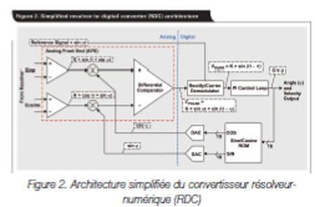 Un résolveur est un capteur de position angulaire communément utilisé dans des environnements rigoureux et difficiles. Un véhicule entièrement électrique (EV) peut utiliser plusieurs résolveurs pour divers systèmes de commande qui effectuent un mouvement rotatif, des résolveurs supplémentaires peuvent également être nécessaires pour créer la redondance du système à des fins de sécurité. [1] Une interface de convertisseur résolveur- numérique (RDC) traite la sortie analogique du capteur du résolveur et la communique au système de contrôle du moteur (ECU) d’un EV sous format numérique.