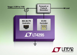 Linear Technology Corporation présente le LT4295, un contrôleur d’interface, au standard IEEE 802.3bt, pour composants alimentés (PD), destiné aux applications nécessitant une puissance de 71W. Le prochain standard PoE (Power over Ethernet : alimentation sur Ethernet) - IEEE 802.3bt - permet aux fabricants d’avoisiner les 25,5W alloués par le standard 2009 IEEE 802.3at. Linear Technology est prêt pour la nouvelle génération PoE avec les premiers produits du marché compatibles IEEE. Le nouveau standard, également connu sous les appellations PoE++ ou 4PPoE, accroît le poste de puissance pour permettre de nouvelles applications et caractéristiques, tout en fonctionnant sur Ethernet 10 Gigabits (10GBASE-T) et en maintenant la compatibilité avec les équipements IEEE plus anciens. Le LT4295 est compatible avec la norme IEEE 802.3bt (version 2.0) et possède les caractéristiques nouvellement présentées, comprenant toutes les classes supplémentaires de PD (5, 6, 7, et 8), les types de PD supplémentaires (type 3 et type 4) et de classification 5 évènements.