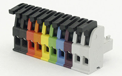 Les borniers à ressort des séries ST et SP sont en vente avec une rangée de pas de 2,5 mm à 10,16 mm et un nombre de pôles de 2 à 24. Ils conviennent pour des sections de raccordement de max. 2,5 mm² (jusqu’à AWG 12). Les couleurs standards pour les boîtiers et les leviers sont le gris et le noir. Toutefois, il est possible de les personnaliser pour des solutions client, soit avec des couleurs différentes de pôles ou de levier, soit avec des impressions individuelles des pôles.