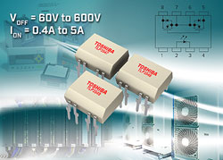Le Toshiba TLP3547 est un produit 60V, offrant le courant de pilotage le plus élevé du marché[1], avec 5A (maxi). Le TLP3548 est un produit 400V, avec un courant de pilotage maximum de 0.4A et une commutation très rapide (1 ms maxi). Le TLP3549 600V est le premier photo-relais du marché[2] à utiliser un MOSFET DTMOS à structure super-jonction, et offre un courant de pilotage de 0.6A (maxi).