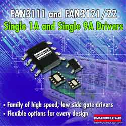 Fairchild Semiconductor (NYSE :FCS) élargit sa gamme de drivers de gate low-side haut débit avec des drivers 1A et 9A. Tous ces drivers offrent des alimentations électriques de meilleure densité, de plus haute efficacité et plus fiables. Avec ces nouveaux drivers 1A et 9A qui s’ajoutent aux drivers 2A simple, 2A double et 4A double, les séries FAN31xx et FAN32xx représentent la meilleure combinaison en performances, taille et en flexibilité de conception pour les dispositifs électroniques de conversion électrique (SMPS), les convertisseurs alternatifs synchrones, les drivers de transformateur inductif et les circuits de contrôle moteur.