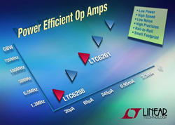 Les LTC6261/62/63 réalisent un produit gain-bande passante de 30MHz et une vitesse de balayage de 7V/ms, consommant juste 240µA par amplificateur. Le niveau de bruit en tension, dans la bande passante, est de seulement 13nV/ÖHz. Ils sont stables à n’importe quel gain et n’importe quelle charge capacitive jusqu’à 1nF.
