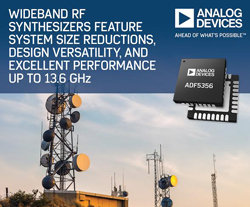 Analog Devices, Inc. (NASDAQ : ADI) annonce sous la référence ADF5356 un synthétiseur large bande de nouvelle génération qui fonctionne jusqu’à 13,6 GHz et intègre un oscillateur commandé en tension (VCO). Ce nouveau synthétiseur est destiné à des applications telles que les infrastructures sans fil, les liaisons point à point hyperfréquences, les tests et mesures électroniques, et les terminaux satellites. Il est accompagné par l’ADF4356, un synthétiseur cadencé à 6,8 GHz aux performances comparables.