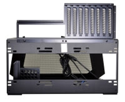 Le PC-T70 est compatible avec les cartes mères E-ATX, ATX, Micro-ATX et Mini-ITX, avec huit équerres PCI pour installer des cartes graphiques jusqu’à 330mm de longueur. Si fermé, le boitier offre une hauteur maximale de 180mm au radiateur processeur. Le panneau inférieur permet de monter une alimentation ATX de 330mm de longueur et un ensemble de cinq disques 2,5” et un disque 3,5” ou deux disques 2,5” et deux disques 3,5”. Les utilisateurs peuvent aussi utiliser ce panneau pour installer un radiateur de 360mm, des pompes et réservoirs pour des circuits personnalisés de refroidissement liquide.
