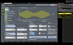 Les utilisateurs peuvent utiliser le générateur intégré via le large écran tactile. Un affichage graphique indique clairement tous les paramètres relatifs aux formes d’ondes à générer. Les formes d’ondes arbitraires peuvent également être issues d’une des voies de l’oscilloscope. Par exemple, des télégrammes du bus acquis peuvent être copiés dans le générateur de formes d’ondes arbitraires simplement en appuyant sur un bouton..