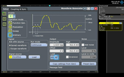 Avec le générateur, tous les oscilloscopes R&S RTO2000 et R&S RTE peuvent délivrer des signaux de mesure sur deux voies analogiques et huit voies numériques, rendant possible le test de circuits complexes dans un minimum d’espace, en utilisant un seul appareil. Même les tests de conformité totalement automatisés peuvent être réalisés.Les options générateurs de formes d’ondes arbitraires et de pattern R&S RTO-B6/R&S RTE-B6 proposent deux voies analogiques et huit voies numériques utilisées via des commandes qui sont entièrement intégrées dans l’interface graphique utilisateur de l’oscilloscope. Chacune des deux voies analogiques du générateur possède une bande passante de 100 MHz et peut être utilisée avec les quatre modes : en tant que générateur de fonctions, comme générateur de modulations, dans le mode balayage, ou pour lire les formes d’ondes arbitraires. La vitesse d’échantillonnage est de 500 Méchantillon/s et sa résolution de 14 bits. Cela le rend parfaitement adapté aux tâches de développement. Il peut être utilisé pour caractériser des composants tels que des amplificateurs différentiels, par exemple.