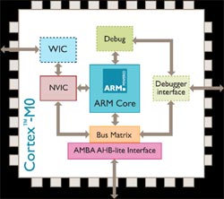 Consommant seulement 85 microwatts/ MHz (0,085 milliwatts) avec un nombre de portes ne dépassant pas 12K (avec la bibliothèque de cellules ARM 180ULL), le cœur Cortex-M0 a été développé avec le savoir-faire inégalé d’ARM, leader reconnu des technologies à basse consommation d’énergie et fournisseur clé pour la création de systèmes exigeant une consommation d’énergie ultra faible. Ce nouveau cœur étend l’offre MCU d’ARM dans le secteur des applications MCU et SoC, telles que les appareils médicaux, la mesure électronique, l’éclairage, les contrôles intelligents, les accessoires de jeu, les alimentations électriques compactes, les systèmes de gestion d’alimentation et d’automatisation, les systèmes analogiques de précision et les systèmes IEEE 802.15.4 (ZigBee) et Z-Wave. Le Cortex-M0 répond également aux besoins du marché des systèmes programmables à signaux mixtes, avec des applications incluant des capteurs intelligents et des déclencheurs, qui exigent normalement des systèmes analogiques et numériques séparés.