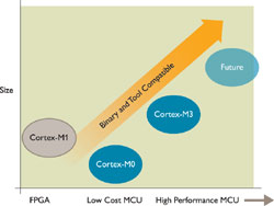 Outre une performance 32 bits pour un tarif 8 bits, le processeur Cortex-M0 est compatible avec des processeurs à haute fonctionnalité tel que le Cortex-M3.