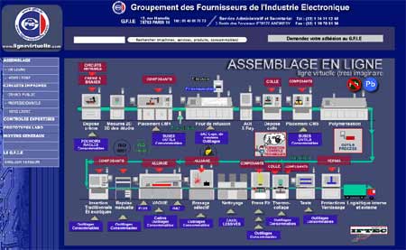 Ce site a été réalisé sur le modèle d’un Salon professionnel virtuel : toutes les étapes de fabrication y figurent, depuis l’élaboration des circuits imprimés jusqu’au contrôle final, en passant par les étapes de stockage, d’assemblage, de nettoyage etc..,.