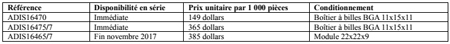 Les modèles référencés ADIS16470, ADIS16475 et ADIS16477 se distinguent par des performances exceptionnelles dans un format compact en boîtier CMS. Ces trois références sont optimisées pour répondre aux exigences de performances, de coût et de fonctionnalité des applications auxquelles elles sont destinées. Pour leur part, les modèles ADIS16465 et ADIS16467 affichent des performances similaires dans un boîtier plus robuste. Ensemble, ces nouveaux produits offrent un rapport coût/performances inédit aux concepteurs d’applications telles que des drones (UAV), qui devaient jusqu’alors utiliser des solutions onéreuses, peu sûres et peu performantes par exemple en intégrant des capteurs pour applications grand public incapables d’atteindre les objectifs de fiabilité correspondants. Ces nouvelles centrales inertielles apportent les mêmes avantages aux machines autonomes qui sont utilisées dans des domaines tels que l’agriculture connectée, où la demande en équipements de ce type obligeait jusqu’alors les concepteurs à choisir entre des capteurs de haute performance au coût élevé ou des modèles commerciaux aux performances réduites.
