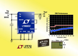 Linear Technology Corporation étend sa famille de régulateurs DC/DC µModule™, à très faible niveau de bruit, en introduisant le LTM8032, un système complet régulateur DC/DC en un boîtier, conforme au niveau électromagnétique (CEM). Le LTM8032 inclut l’inductance, le contrôleur DC/DC à découpage, les commutateurs de puissance, les filtres et tous les composants nécessaires dans un boîtier LGA (Land Grid Array), de 9 mm x 15 mm x 2,82 mm.