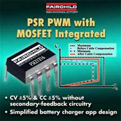 Fairchild Semiconductor (NYSE :FCS) permet de simplifier et de rendre la conception d’un circuit très efficace pour les chargeurs de batterie et les alimentations avec la nouvelle gamme de contrôleurs de modulation de largeur d’impulsion (PWM) de régulation PSR (primary-side regulation). Ces MOSFET EZSWITCH peuvent facilement assurer une tension constante étroite et un courant constant sans recourir à un circuit secondaire. En utilisant cette approche plutôt que l’approche discrète RCC (rising choke converter), la conception s’en trouve simplifiée, le recours à des composants supplémentaires est supprimé et les coûts globaux du système production, liste des pièces et coûts de qualité sont réduits. Les FSEZ1216 et FAN102 répondent aux besoins de très haute efficacité pour respecter le standard ENERGY STAR EPS 2.0. Cette spécification EPS 2.0 nécessite une augmentation de l’efficacité de 6% sur EPS 1.1 pour se conformer à ce label.