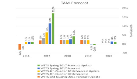 Incapacité de la « Supply-chain » au niveau mondial à fournir des prévisions fiables et avec suffisamment de préavis. L’évolution des prévisions de croissance du marché du semi-conducteur sur 2017 fournie par les analystes est parlante. Alors que la croissance mondiale aura finalement atteint 20%, les prévisions de fin 2016 se limitaient à 3.3% pour 2017 !