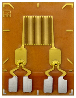 La configuration innovatrice de la nouvelle jauge d’extensométrie LC61-3/350 de HBM permet un gain de temps notable, lors de l’installation de jauges utilisées sur des plages de température extrêmes. Grâce aux grands plots de soudure robustes soulagés en traction sur la LC61-3/350, un contact direct des fils de liaison est maintenant possible sur la jauge. De plus, les surfaces de raccordement en technique 4 fils permettent d’éliminer d’éventuelles variations de résistance des raccordements de la jauge. L’adaptation de la réponse en température de la jauge est réalisée au choix pour de l’acier ou de l’aluminium dans une plage de température de -200°C à +250°C.