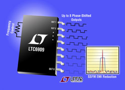 « Intégrer plusieurs régulateurs à découpage en un seul système est beaucoup plus simple avec le LTC6909, » déclare Doug Laporte, responsable de la section conception de Linear Technology. « Le LTC6909 peut être utilisé pour activer et désactiver un ensemble de régulateurs, pour synchroniser leur fonctionnement, améliorer le rendement et présenter des performances bien meilleures quant aux IEM grâce à la modulation SSFM. »