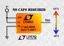 La famille LTC6652 est présentées en sept tensions de sorties : 1,25 V, 2,048 V, 2,5 V, 3,0 V, 3,3 V, 4,096 V et 5 V. Le LTC6652 est en pleine production.
