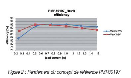 Le concept de référence PMP30197 de Texas Instruments propose un exemple pratique de flybuck inverseur avec rétroaction de photocoupleur et redressement synchrone. Son rendement maximal dépasse les 92 % (voir figure 2), et sa régulation du courant de charge, 1,5 %.