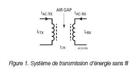 Un système de transmission d’énergie sans fil inductif (illustré par la figure 1) comporte un dispositif électronique d’émetteur, une bobine d’émission, une bobine de réception et un dispositif électronique de récepteur. La puissance reçue dépend de plusieurs facteurs : puissance d’émission, couplage entre la bobine d’émission (Tx) et les bobines de réception (Rx) (distance, alignement, propriétés physiques, ferrites), métaux étrangers situés à proximité, mais aussi tolérances des composants. Dans un système de transmission sans fil, l’énergie est transmise en utilisant un champ magnétique alternatif. Le courant alternatif présent dans la bobine d’émission produit un champ magnétique. La bobine de réception étant placée dans ce champ, un courant alternatif y est induit. Ce courant alternatif induit est fonction de celui de l’émetteur et du couplage entre les bobines d’émission et de réception. Il est possible d’améliorer la portée de la transmission d’énergie par effet de résonance. Il suffit pour cela de connecter un condensateur résonant à la bobine du récepteur pour créer une cellule LC accordée sur la même fréquence que celle du courant alternatif de la bobine d’émission.