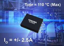 En outre, ce nouveau TLP5832 garantit un temps de propagation (tPLH, tPHL) de 200 ns, avec un biais de propagation (tPsk) de ± 80 ns sur toute la plage de température opérationnelle de -40°C à +110°C. Par conséquent, il permet de concevoir des inverteurs à haut rendement, en réduisant les marges de conception liées à la température.