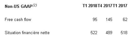 Le free cash flow, s’élève à 95 millions de dollars, en hausse significative par rapport au montant de 62 millions de dollars publié au premier trimestre 2017.