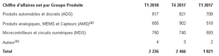 (a) Depuis le 1er janvier 2018, l’activité Sous-systèmes n’est plus comptabilisée dans « Autres » mais dans le Groupe AMS (Produits analogiques, MEMS et Capteurs). Les trimestres antérieurs ont été recalculés sur cette base.