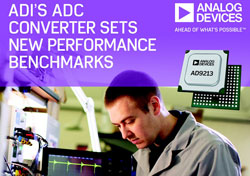 Le convertisseur AD9213 apporte aux clients des secteurs de l’aéronautique et de la défense une flexibilité accrue, la possibilité de traiter de plus vastes sections du spectre de fréquence en applications de surveillance et contre-mesures électroniques, ainsi qu’une résolution et un rayon d’action supérieurs pour les conceptions radar. En outre, ce composant donne aux fabricants d’appareils de tests et mesures électroniques (ETM) la possibilité de mieux différencier leur offre et d’augmenter le niveau de performances des produits opérant dans le domaine temporel, tels que les oscilloscopes numériques et les systèmes d’analyse chimique et de spectroscopie. L’élargissement de la bande de Nyquist permet aux entreprises du secteur des communications par satellite de livrer des produits fonctionnant dans une bande passante accrue. De plus, la combinaison de larges bandes passantes d’entrée et de fréquences d’échantillonnage élevées ouvre la voie à l’utilisation de nouvelles architectures à prédistorsion numérique large bande dans les applications de communications sans fil.