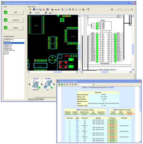TestWay Coverage Analyst est un outil d’analyse de couverture de test qui combine l’estimation amont (prévisionnelle avant le développement des tests) et la mesure aval (a posteriori, à partir des tests existants) en s’appuyant sur PCOLA-SOQ1. Il est en mesure de combiner les équipements Agilent Medalist i3070 et i1000 dans une ligne de production incluant d’autres équipements de test ou d’inspection tels que : Inspection Optique Automatisée, Inspection Rayon-X, Test Boundary-Scan, MDA et tests fonctionnels.