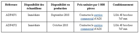 Capitalisant sur l’expertise acquise par Analog Devices depuis 25 ans dans le domaine des synthétiseurs RF et hyperfréquences, le circuit ADF4371 est le synthétiseur qui conjugue les fréquences les plus élevées et la plage de fréquence de sortie RF continue la plus large (comprise entre 62 MHz et 32 GHz) actuellement disponibles sur le marché. Outre une très faible figure de mérite PLL de -234 dBc/Hz, un très bas niveau de parasites (-100 dBc typique) et un faible bruit de phase VCO (-134 dBc/Hz @1 MHz décalé à 8 GHz) auxquels s’ajoute un filtre suiveur intégré, ce synthétiseur se distingue par un haut niveau de performances et d’adaptabilité. Grâce à son architecture d’une grande richesse fonctionnelle hautement configurable, les concepteurs peuvent désormais utiliser un seul synthétiseur ultra-compact pour répondre à la quasi-totalité des exigences en oscillateurs locaux/sources d’horloge opérant dans ces plages de fréquences, ce qui réduit les coûts de développement, les risques encourus et les délais de mise sur le marché.