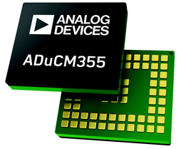 L’ADuCM355 est un microcontrôleur ayant un cœur ARM Cortex™ M3 et comportant une chaîne analogique de précision ultra-basse consommation spécialement conçu pour contrôler et mesurer des capteurs chimiques et biologiques. C’est actuellement la seule solution capable de prendre en charge deux potentiostats et plus de trois électrodes par capteur. Ses principales caractéristiques sont les suivantes :