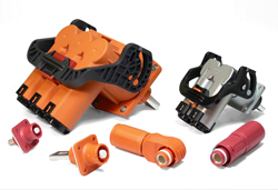Les prises et les fiches de la série MSD sont conçues pour procurer la sûreté et la fiabilité nécessaires à la connexion des systèmes d’alimentation de véhicules électriques. Elles permettent la déconnexion sans outil d’une batterie haute tension embarquée tout en assurant la protection contre les courts-circuits. Elles exploitent un système de levier à deux étages pour déverrouiller le circuit HVIL (High Voltage Interlock) avant la séparation des contacts. Toutes les surfaces conductrices haute tension sur les prises sont protégées de tout contact selon l’indice de protection IP2XB.