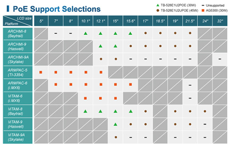 Basée sur des cartes et des modules d’extension APLEX PoE+ (TB-528E1U2POE, etc.), l’efficacité énergétique maximale est assurée jusqu’à 45 Watt, ce qui convient aux grands écrans (15 pouces ou plus) et Panel PC/HMI haute performance avec Intel Baytrail à Skylake 6ème génération.