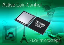Le cœur de ce nouveau dispositif est l’AGC (Active Gain Control, ou contrôle automatique de gain) de Toshiba, qui optimise le courant de pilotage en fonction du couple nécessaire, empchant ainsi le décrochage, tout en réduisant la consommation. Populaire dans les applications bureautiques où haute-précision et silence de fonctionnement sont critiques, le TB67S128FTG réduit le bruit et les vibrations en gérant le 1/128ème de pas, comparé aux 1/32ème de pas d’autres CI drivers. Il intègre également une fonction SMD (Selectable Mixed Delay, ou retard mixte sélectionnable), une fonction de réglage du courant qui sélectionne la meilleure configuration et optimise le courant de pilotage selon le moteur.