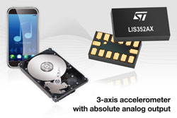 STMicroelectronics premier fabricant de circuits intégrés de détection de mouvements pour applications portables et grand public, enrichit son portefeuille de capteurs MEMS (micro-systèmes électromécaniques) ultra-compacts et de hautes performances avec un nouvel accéléromètre tri-axial doté d’une sortie analogique absolue. Capable de fonctionner sous toute tension d’alimentation comprise entre 2,16 et 3,6 V et doté d’une très grande stabilité en température et dans le temps, le capteur LIS352AX de ST convient parfaitement aux applications de détection de mouvements dans les appareils alimentés par batterie où l’espace est réduit et les coûts serrés.