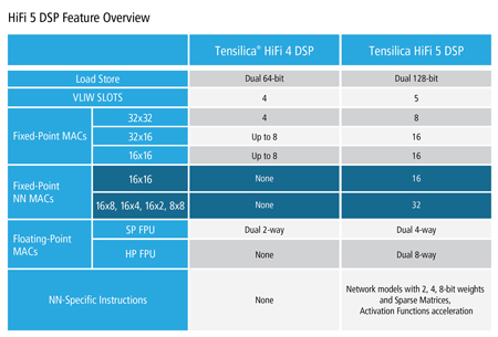 Capacité de calcul MAC multipliée par 2 par rapport au DSP HiFi 4 pour le pré et post-traitement, avec :