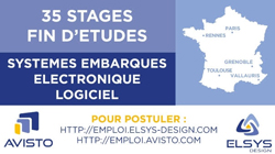Au cours du premier trimestre 2019, ELSYS Design et AViSTO vont accueillir trente-cinq stagiaires issus de parcours BAC +5 (ingénieur ou équivalent). Passionnés, mêlant savoir-faire et savoir-être, les étudiants sélectionnés mettront en œuvre des technologies de pointe au cours de leur stage. Encadrés par un chef de projet ou un ingénieur expérimenté, ils bénéficieront d’un environnement idéal pour approfondir les connaissances acquises durant leur formation et être ainsi en mesure de relever des défis techniques stimulants.